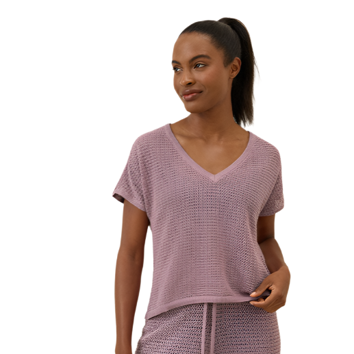 Like an instant vacation in outfit form. Designed to be worn as a cover-up set or styled with any summer bottoms, this crochet v-neck is light, chic, and cool in lightweight organic cotton. Wear it to the pool, the beach, a seaside brunch, or anywhere shoes are optional.