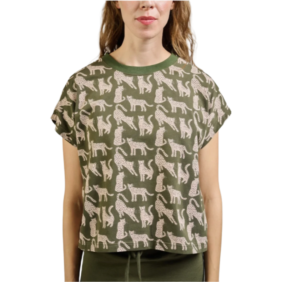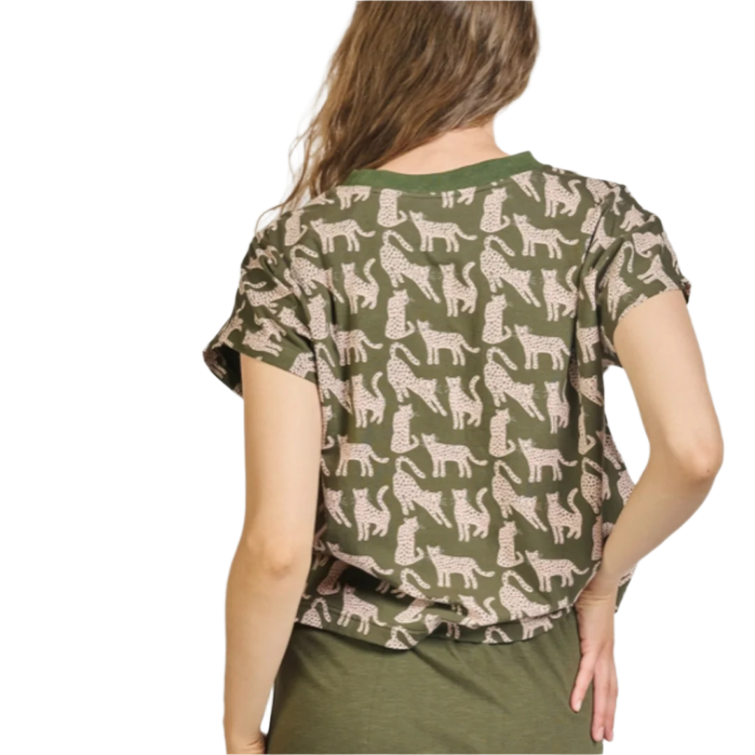 This tee is so fun and easy to wear. The olive animal print can be paired with almost anything and this can be dressed up or down.