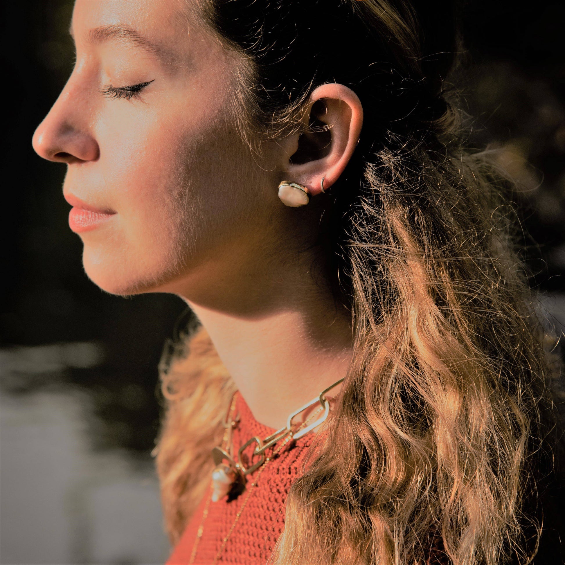 There's no denying that pearls are incredibly appealing. These freshwater pearl studs are full of personality. Our artisan partners hand selected each pair for their beauty and uniqueness, and our minimalist setting allows them to shine. Each earring is set in a gold plated brass finish.