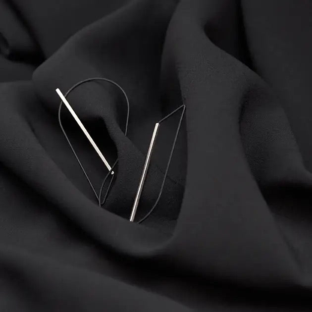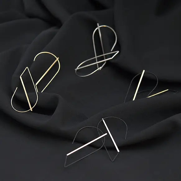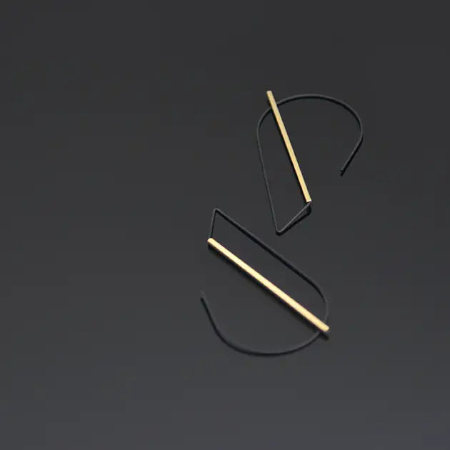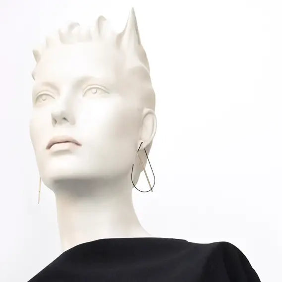 These stunning curved hoops hang directly through the ear and can be worn as a tear-drop shape or upside-down for a more angular look. Geometric and sleek, they are designed to be an eye-catching statement pair!