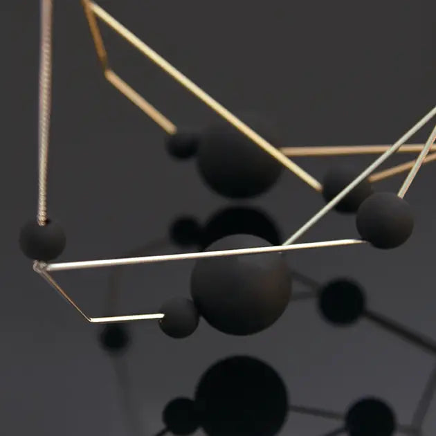This short piece is a bold combination of our signature angular shapes with dynamic orb beads. Get the look of a layered collar piece with a single easy clasp!This piece of wearable art is crafted in a small batch studio in Toronto.