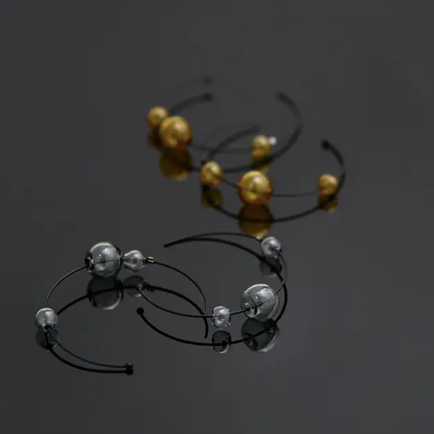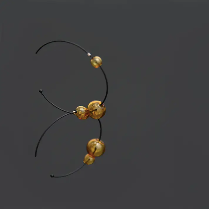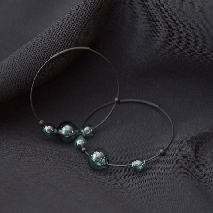 This airy pair of hoops is the perfect lightweight accessory. Hanging directly through the ear, the teeny glass beads are lightweight and immediately eye-catching!