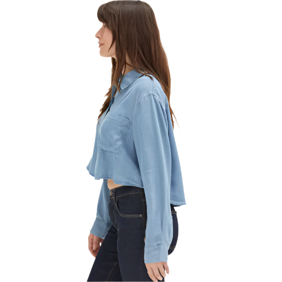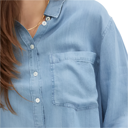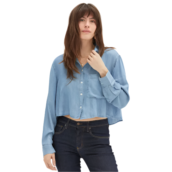 The Ellison is made from an ethically sourced tencel fabric. Button-up denim shirt with a buttery-soft feel, classic chest pocket, and a high-low cut.