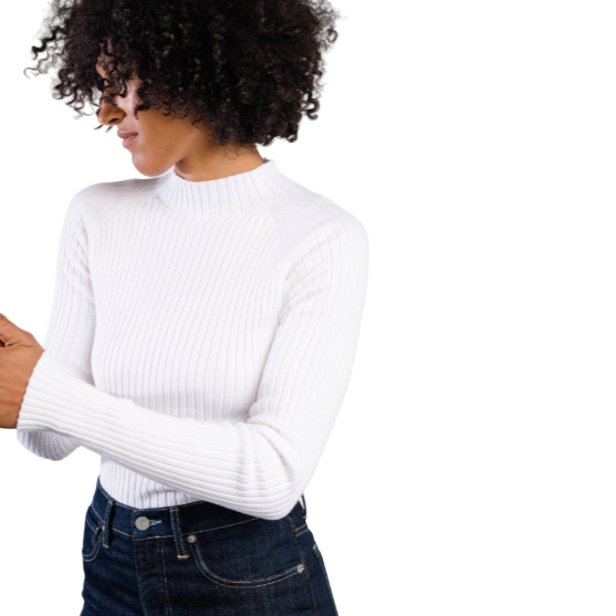 We love this ribbed mock neck sweater this season. Wear it with your fave pair of jeans, slacks or a skirt on its own or layer under a blazer or jumper. The perfect light-weight staple for your closet!