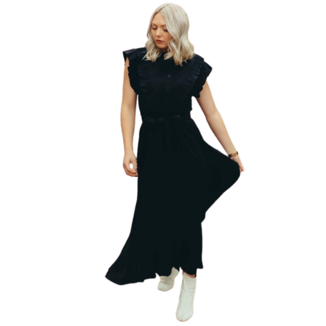 We can't get over this dress! It's the perfect amount of feminine and function in its flattering cut with a tie waist and full button-down closure. This will be your new favorite LBD! (ONE LEFT!)