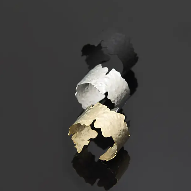 This is a wider version of the popular Mira bangle, featuring a rustic textured surface and curved edges. A beautiful piece that adds a pop of personality and style to any outfit.