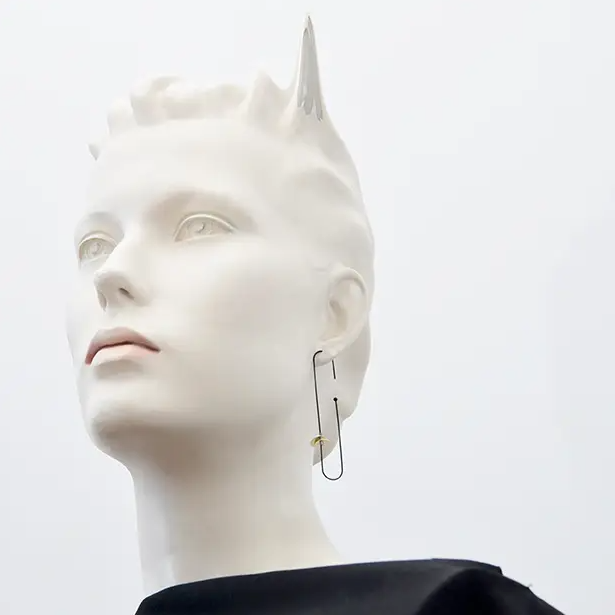 A minimal and delicate design, featuring elongated oval hoops that hang directly though the ear and tiny spinning discs. These earrings are slender and sophisticated -- a stylish accessory!